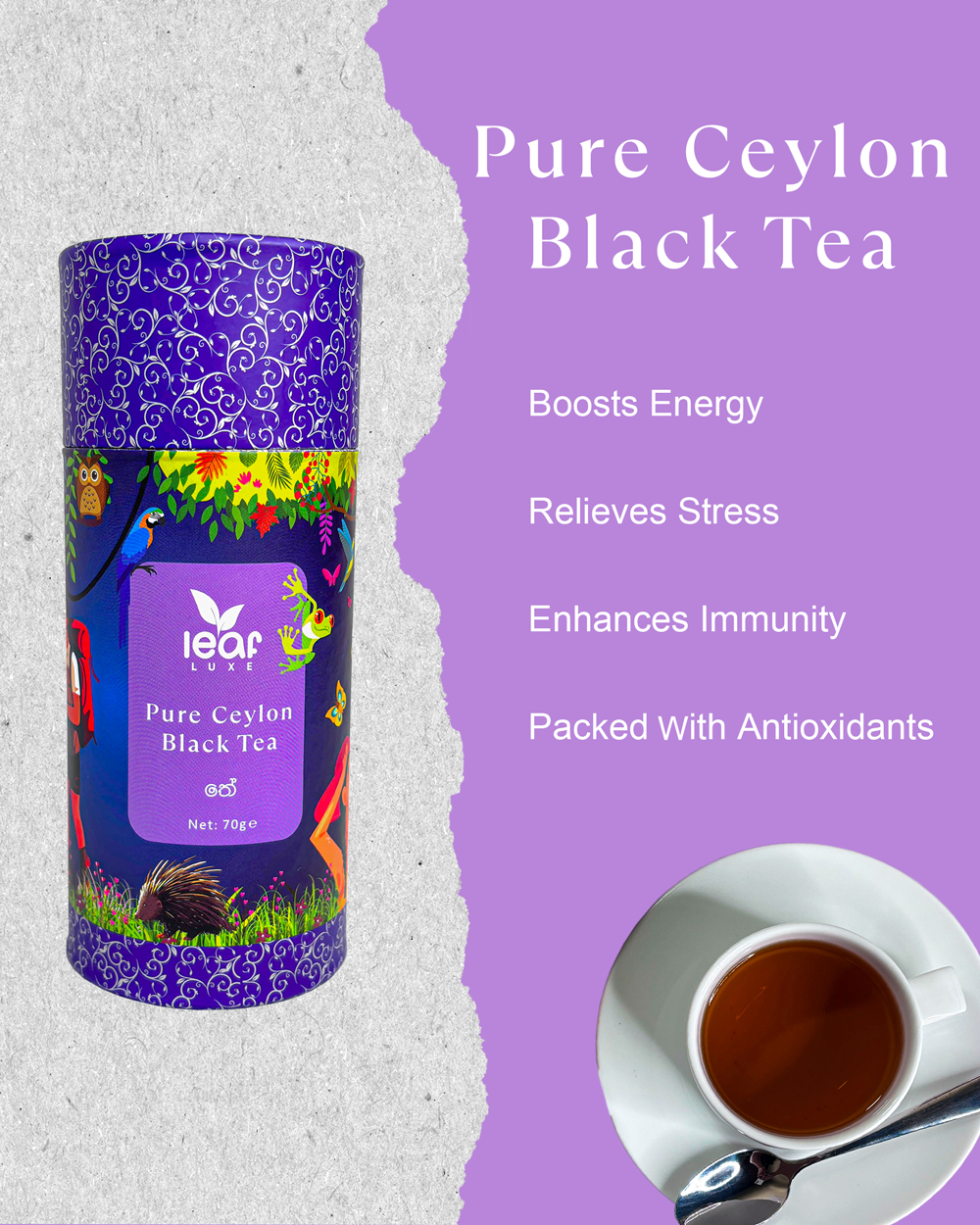 Enjoy the rich, full-bodied flavor of handpicked tea leaves from Sri Lanka’s lush highlands. Perfect for a refreshing morning brew or a soothing afternoon tea. 100% natural, aromatic, and packed with antioxidants. Ideal for tea lovers!